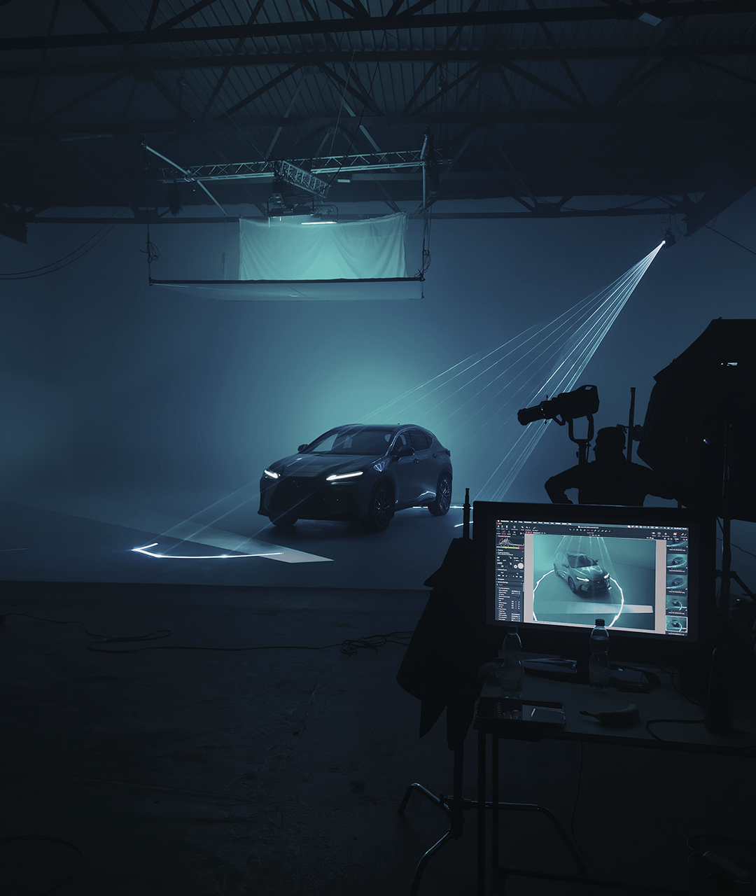 «Унікальність зйомки авто на великій білій циклорамі у Stage 3 полягала в створенні ідеального "світлового кокона". Через складну геометрію кузова Lexus NX 350h, гафер використав понад 200 м² відбиваючих поверхонь, щоб перетворити вигин циклорами на гігантський софтбокс. Це дозволило отримати безперервні світлові лінії на бортах авто, які зазвичай досягаються лише за допомогою дорогого CGI-моделювання»