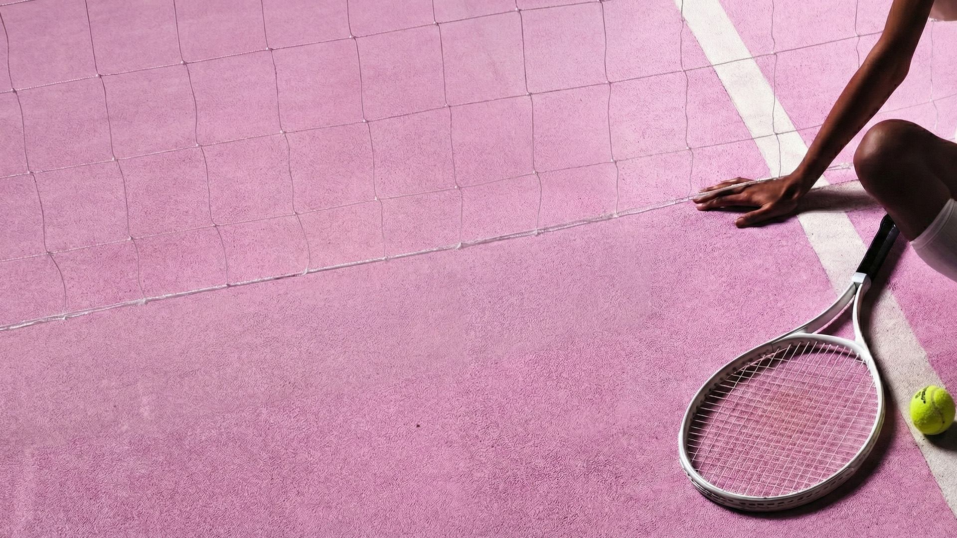 Звичні спортивні локації переосмислені через призму монохромного рожевого кольору, що перетворює функціональний простір на фешн-декорацію.