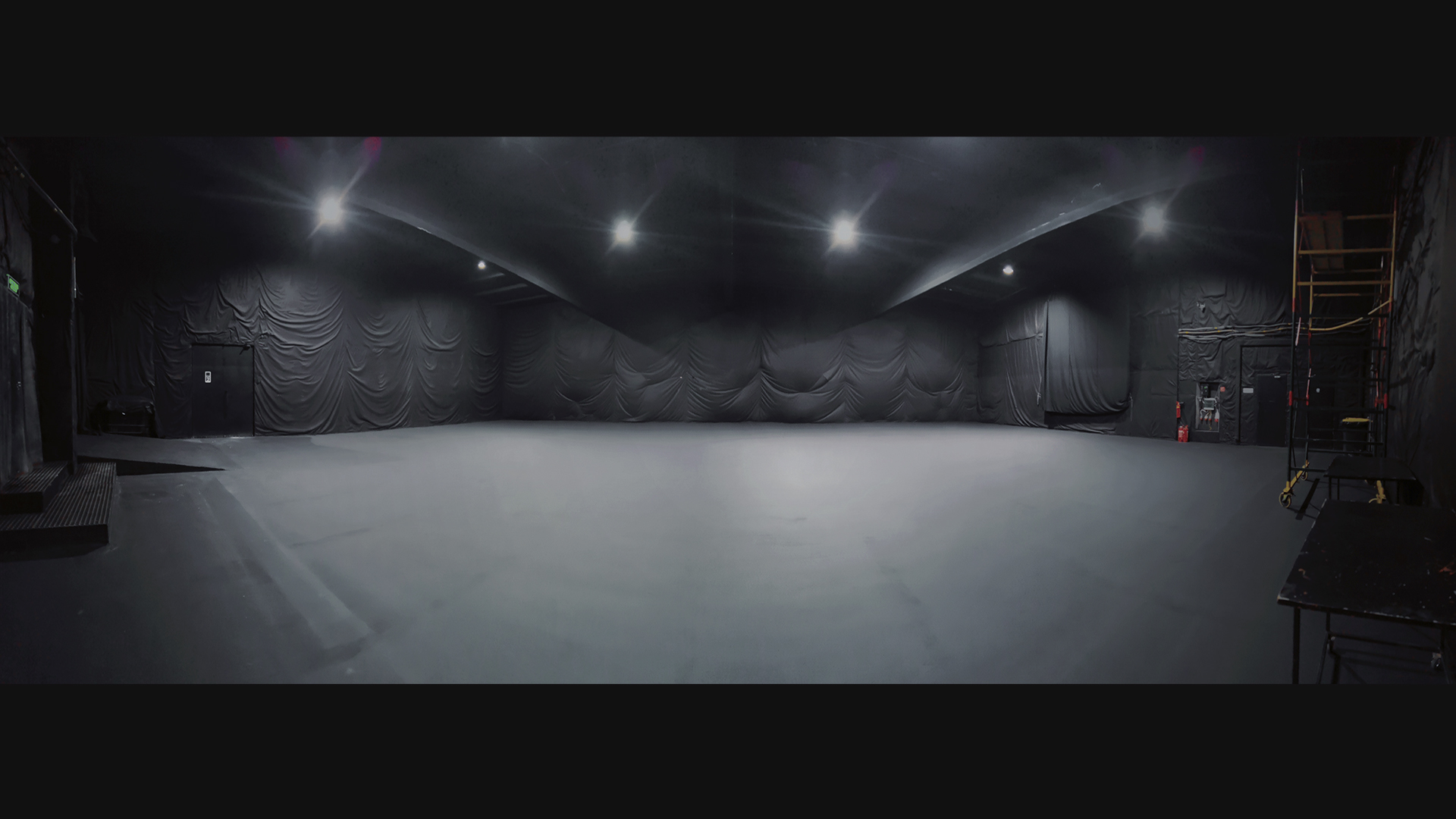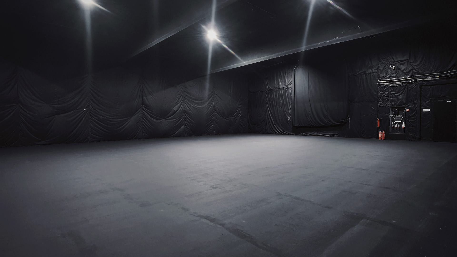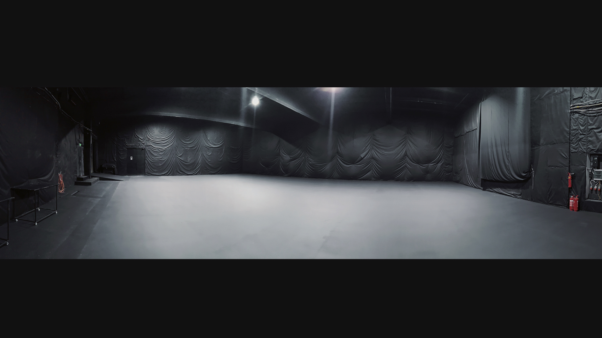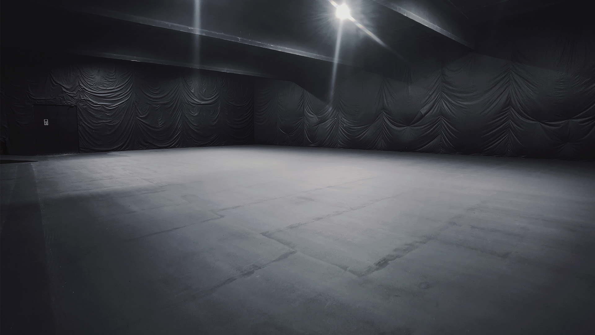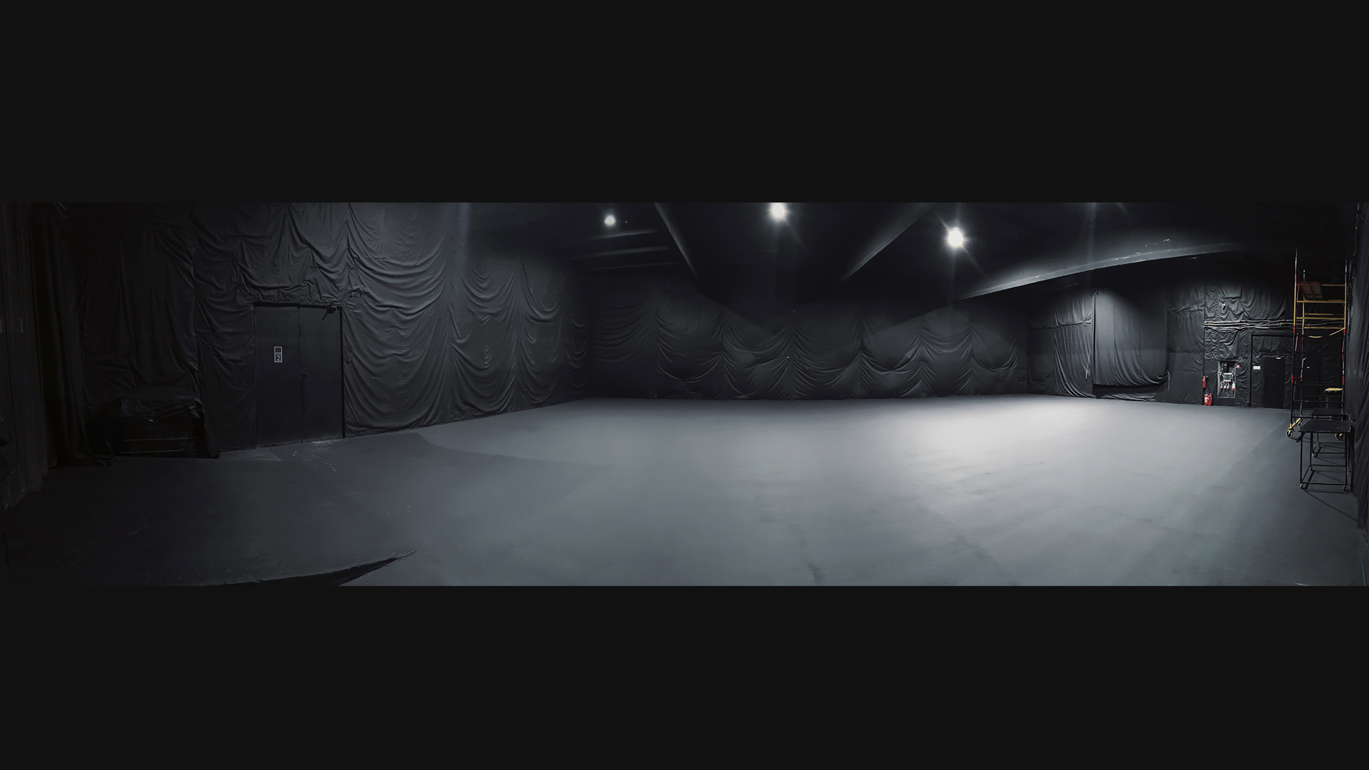 Простір площею 430м2 із висотою стелі до 6 метрів повністю оформлений у стилі TOTAL BLACK на всі 360°: стіни, підлога та стеля чорні, що дозволяє отримати максимальний ефект “провалу в темряву” для драматичних та стильних постановок.