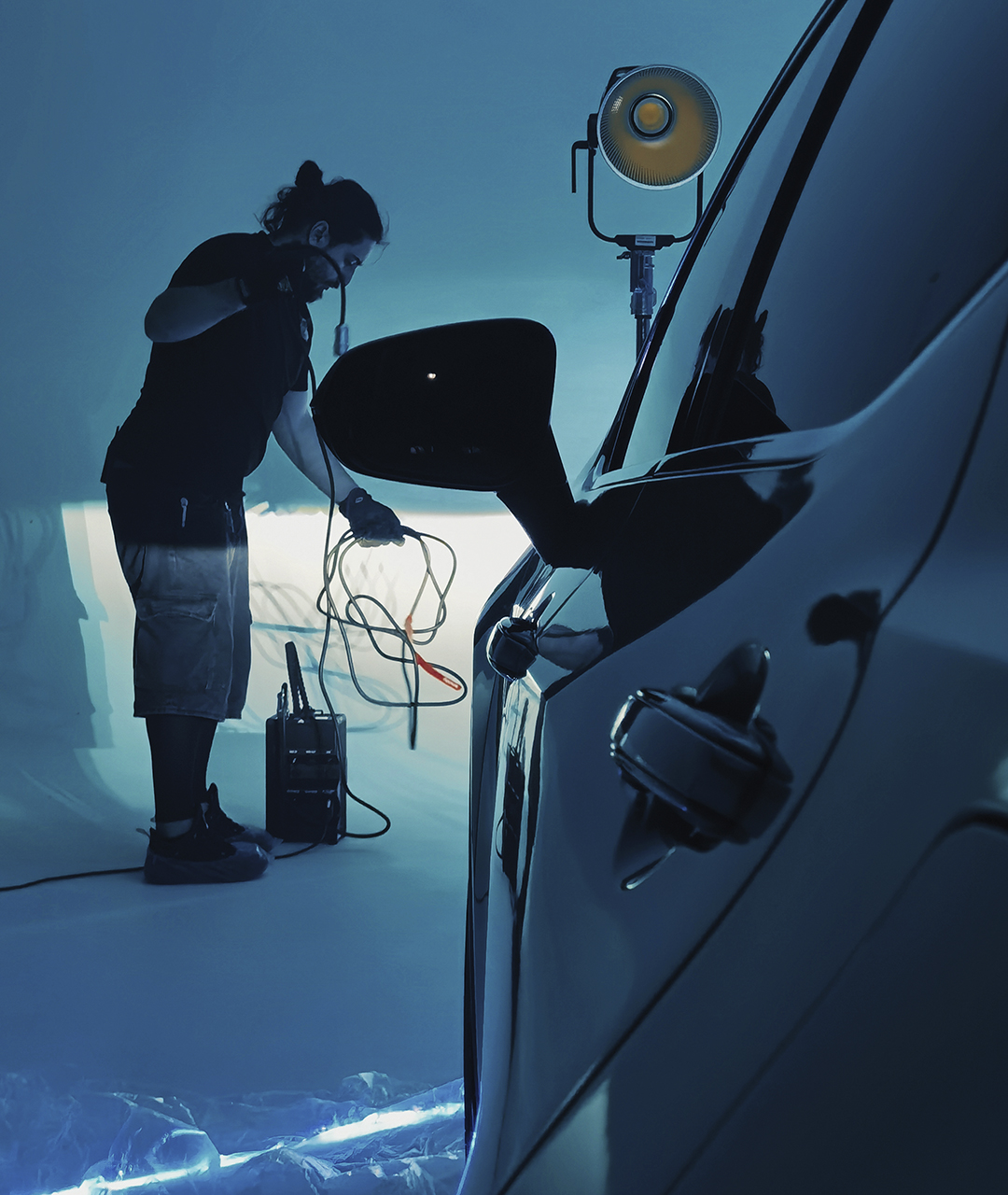 Застосування приладів Arri та Aputure для точного моделювання форми фар та решітки радіатора.