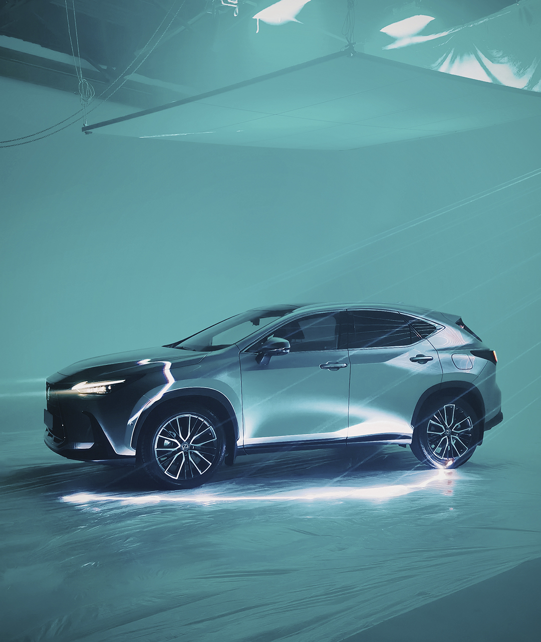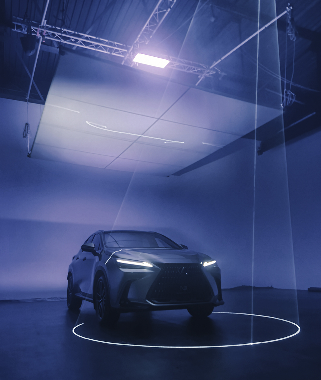 Основним завданням було підкреслити футуристичний дизайн та преміальність моделі NX 350h. Завдяки габаритам STAGE 3 Darkness, ми змогли комфортно розмістити автомобіль на циклорамі, забезпечивши достатньо простору для роботи світлових приладів та великих відбивних панелей.